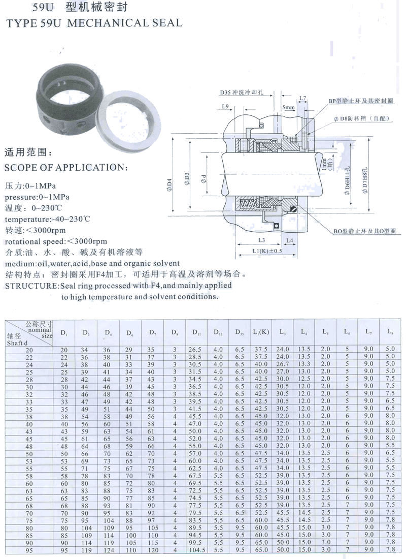 產(chǎn)品簡介:59U型機(jī)械密封是一種廣泛應(yīng)用于工業(yè)設(shè)備上的密封件,它具有高密封性、耐高溫、耐腐蝕、維護(hù)簡便和長壽命等優(yōu)點(diǎn)。在工業(yè)生產(chǎn)中,正確選擇和使用機(jī)械密封,能夠確保設(shè)備的正常運(yùn)行和生產(chǎn)效率的提升。